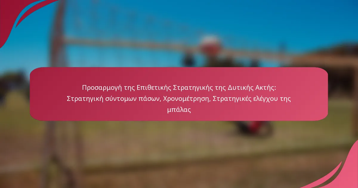 Οι αποτελεσματικές στρατηγικές ελέγχου της μπάλας στη Δυτική Ακτή Επιθετική Στρατηγική επικεντρώνονται στη διατήρηση της κατοχής μέσω σύντομων, ακριβών πασών και στρατηγικού χρονισμού. Αυτές οι στρατηγικές ενισχύουν την ικανότητα της ομάδας να καθορίζει τον ρυθμό του παιχνιδιού ενώ ελαχιστοποιούν τις απώλειες και μεγιστοποιούν τις ευκαιρίες σκοραρίσματος.