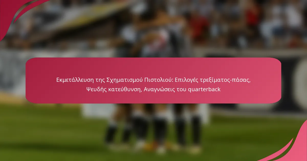 Η διάταξη Pistol είναι μια δυναμική επιθετική στρατηγική στο ποδόσφαιρο που τοποθετεί τον quarterback πίσω από το κέντρο, επιτρέποντας μια ισορροπημένη μίξη τρεξίματος και πάσας. Εκμεταλλευόμενοι τις επιλογές τρεξίματος-πάσας (RPOs), οι quarterbacks μπορούν να παίρνουν γρήγορες αποφάσεις με βάση τις αμυντικές διατάξεις, ενισχύοντας την αποτελεσματικότητα της επίθεσης. Επιπλέον, οι παραπλανητικές κινήσεις μπορούν να μπερδέψουν περαιτέρω τους αμυντικούς, δημιουργώντας ευκαιρίες για εκμετάλλευση κενών στην άμυνα και μεγιστοποίηση των κερδών σε γιάρδες.