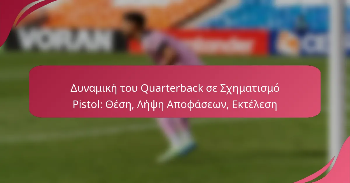 Η δυναμική των quarterback σε σχηματισμό pistol περιστρέφεται γύρω από στρατηγική τοποθέτηση, οξυδερκή λήψη αποφάσεων και ακριβή εκτέλεση. Με την βελτιστοποίηση της στάσης τους και την ενίσχυση της οπτικής τους στο γήπεδο, οι quarterback μπορούν να επικοινωνούν αποτελεσματικά με την επιθετική γραμμή και να κάνουν γρήγορες, ενημερωμένες επιλογές. Αυτός ο σχηματισμός απαιτεί από αυτούς να αξιολογούν τις αμυντικές ευθυγραμμίσεις και να προσαρμόζουν τις κινήσεις τους, εξασφαλίζοντας επιτυχείς παραδόσεις και ακριβείς ρίψεις υπό πίεση.